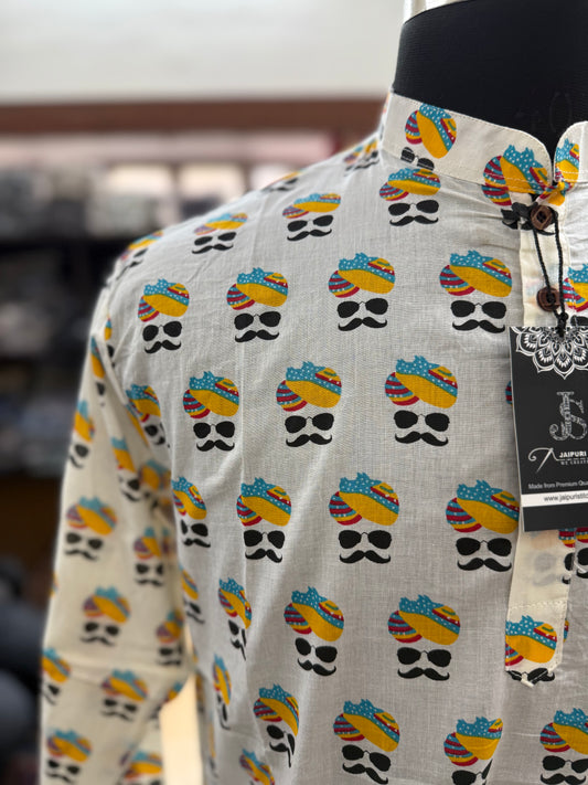 Pagdi Swag Printed Full Sleeves Short Kurta for Men