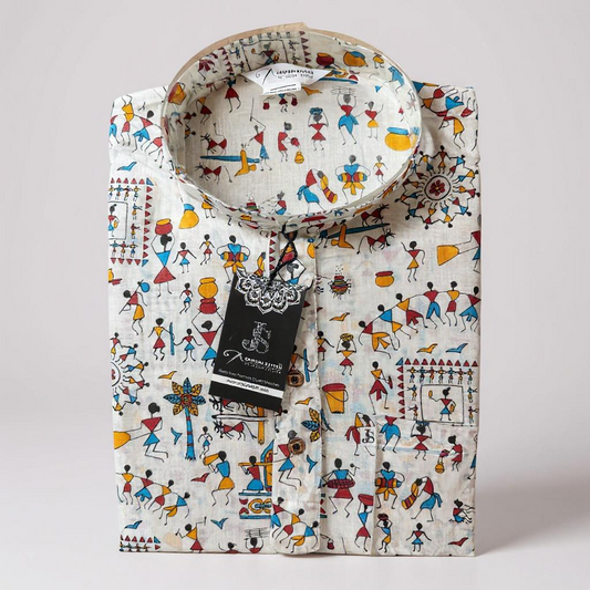 Tribal Warli Printed Full Sleeves Short Kurta for Men