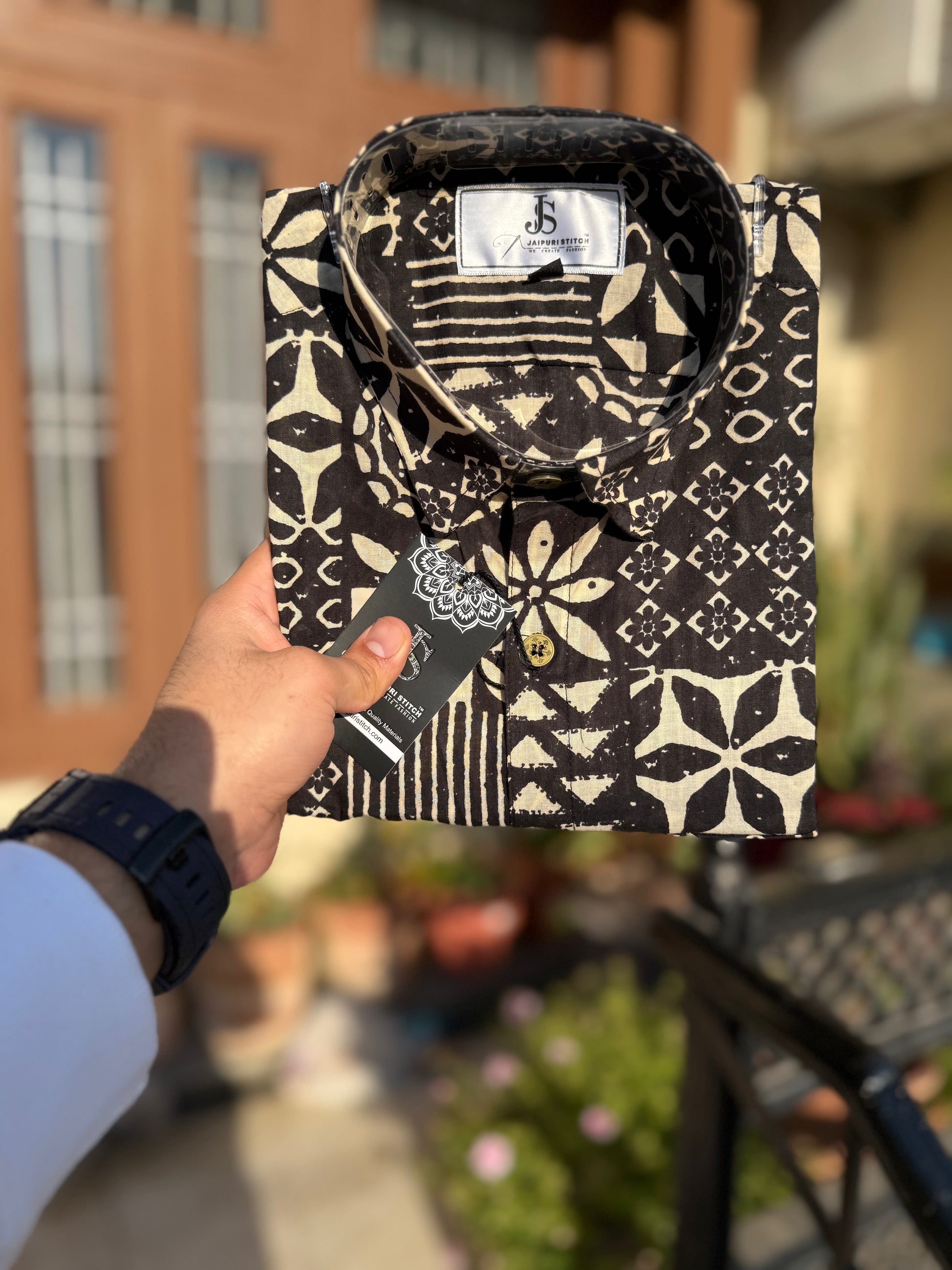 Crafted from 100% pure breathable cotton, this shirt offers exceptional comfort while maintaining a structured, premium look. The monochrome black-and-ivory palette makes it versatile for both daytime and evening wear—perfect for festive occasions, cultural events, travel looks, or elevated casual outfits.