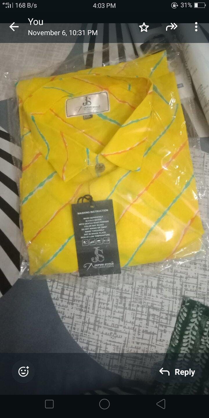 Brighten your wardrobe with the charm of Rajasthan through LeherBuzz – a refreshing yellow Lehariya printed cotton shirt for men. Inspired by the iconic wave-like leheriya patterns of Jaipur, this half-sleeve shirt brings together heritage and comfort in a vibrant and airy design.
